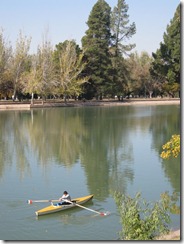 Middle of the park – Rowing on the artificial dam in the park - The road behind the park, leading up to the hill with monument